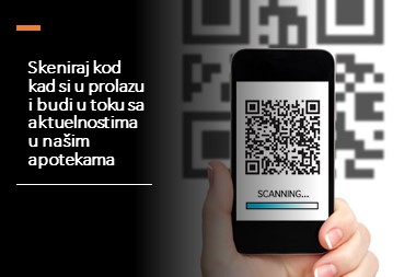 Sve što je potrebno je da svojim telefonom skenirate QR kod i bićete preusmereni na poseban portal na kome su objavljene sve akteulne akcije i promocije u našim apotekama.