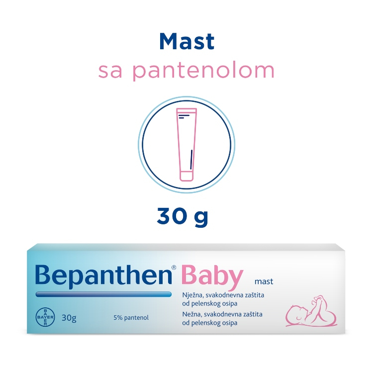 Bepanthen mast namenjena je za negu vrlo suve, grube kože sklone nadražajima. Štiti kožu beba od crvenila, a bradavice dojki održava mekim i glatkim (takođe i tokom dojenja).