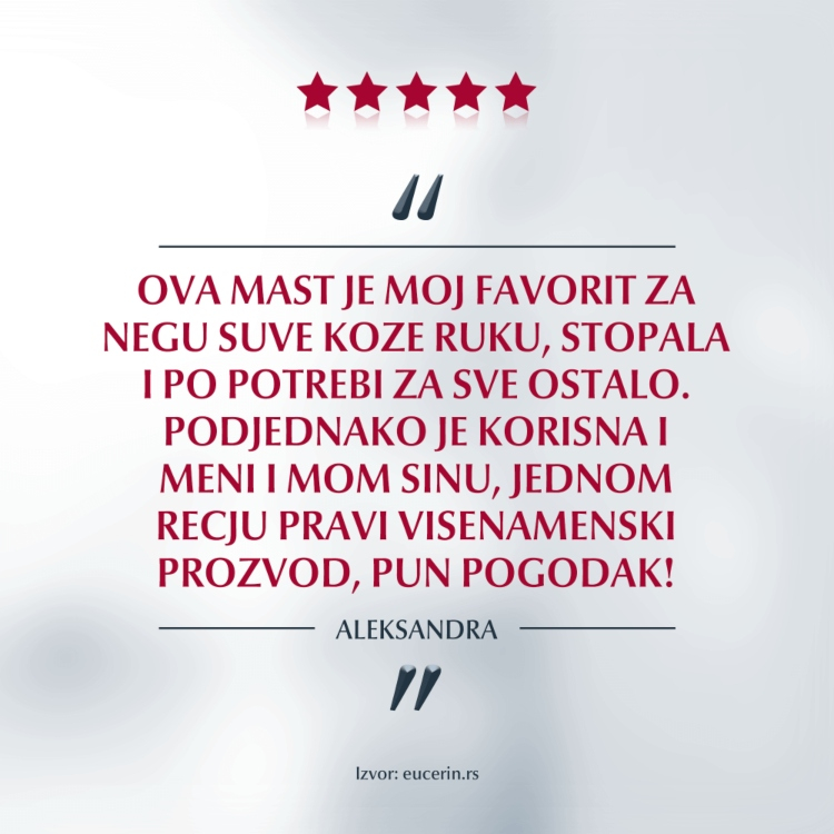 Obnavlja veoma suvu, ispucalu ili iritiranu kožu.