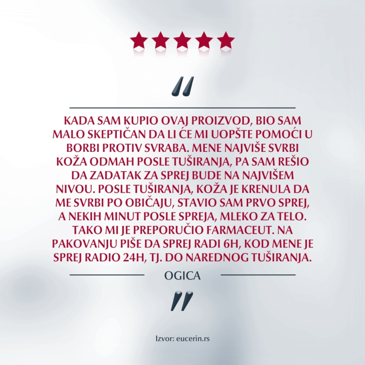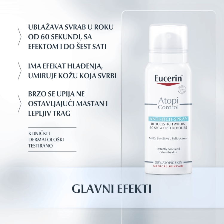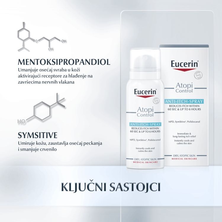 Inovativni sprej sadrži jedinstven kompleks sastojaka koji suzbija osećaj svraba na više nivoa - od spoljašnjih slojeva kože do nervnih završetaka - kako bi se odmah ohladila, smirila i umirila iritirana koža: