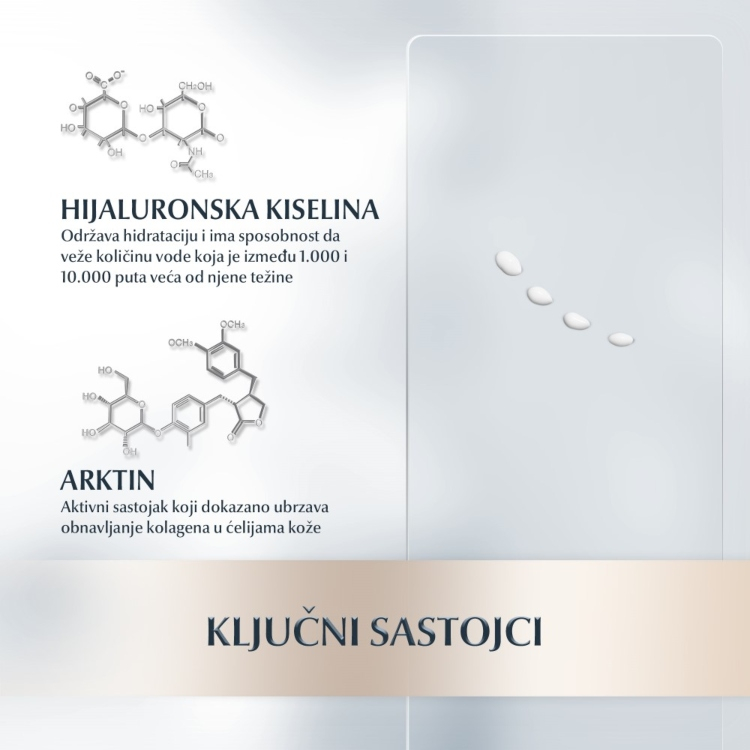 Poboljšava elastičnost kože i popunjava duboke bore. Koža je značajno čvršća i izgleda sveže i sjajno.