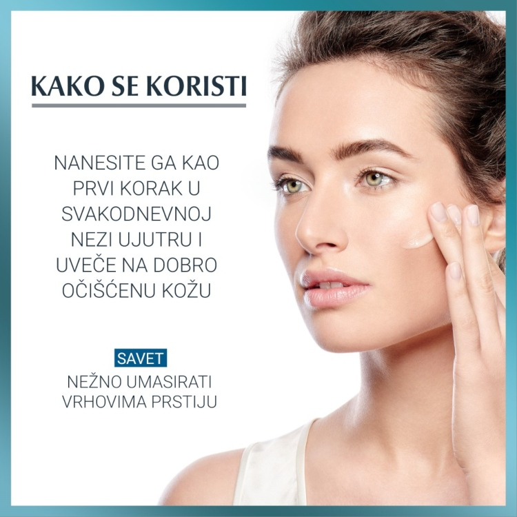 Nanesite ga kao prvi korak u svakodnevnoj nezi ujutru i uveče tako što ćete ga nežno umasirati u dobro očišćenu kožu. Ne nanosite ga na oblast oko očiju.