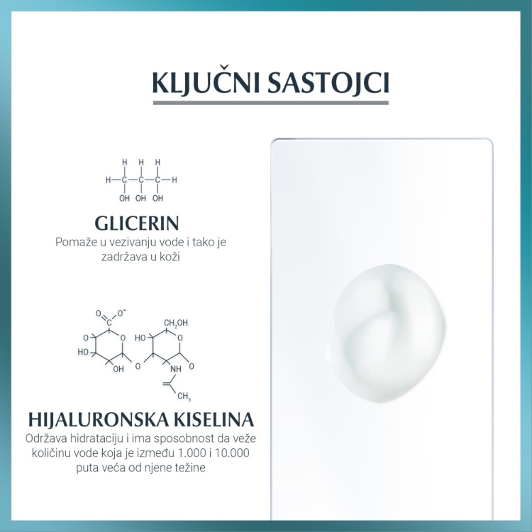 Formulacija, koja se sastoji od samo 11 sastojaka, kombinuje dva tipa hijaluronske kiseline u visokoj koncentraciji i glicerin.