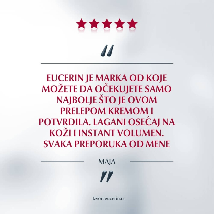 Tokom vremena koža gubi volumen i čvrstinu: konture lica su slabo definisane i ekspresija lica se menja. Eucerin Hyaluron-Filler + Volume-Lift Dnevna krema je specijalno formulisana da popunjava duboke bore, vrati konture licu, pruži efekat zatezanja i zaštiti suvu kožu od sunca.