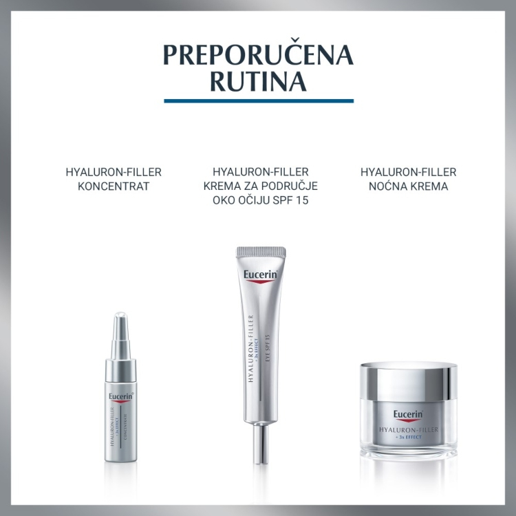 Eucerin Hyaluron-Filler dnevna krema za normalnu i mešovitu kožu SPF15 deluje protiv prvih znakova starenja kože. Vidljivo popunjava fine linije i bore pružajući podmlađen izgled i štiti od prevremenog starenja uzrokovanog UV zracima.