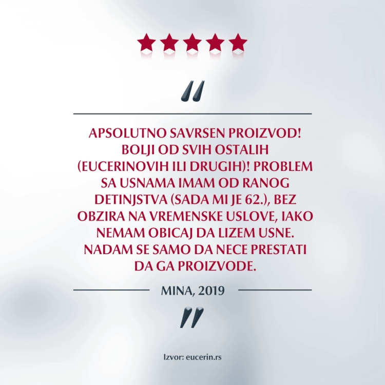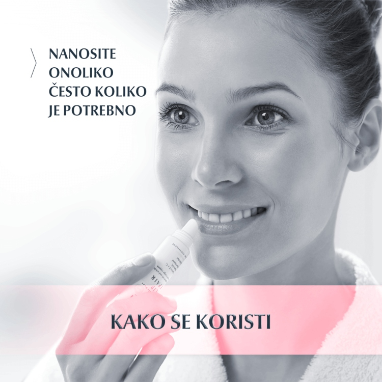 Klinički dokazano smiruje i regeneriše izuzetno suve, ispucale usne.