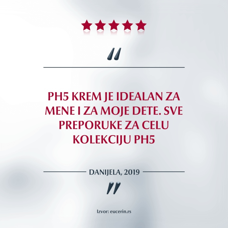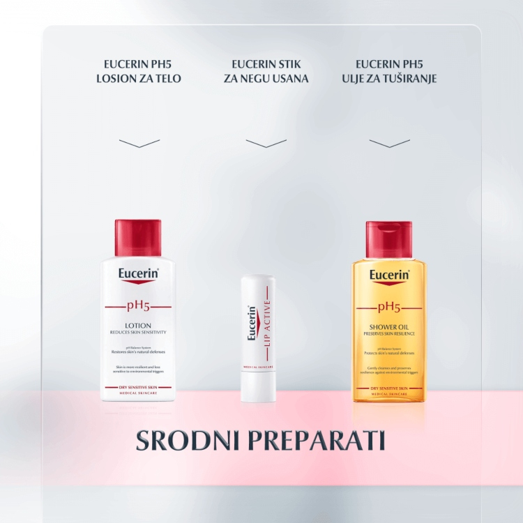 Eucerin pH5 Krema je posebno formulisana za suvu i osetljivu kožu lica i tela. Eucerinov jedinstveni pH Sistem ravnoteže sadrži pH5 Citratni pufer kako bi se obnovila i održala optimalna pH vrednost kože. Formula takođe sadrži dekspantenol, aktivni sastojak poznat po svojim regenerativnim svojstvima.