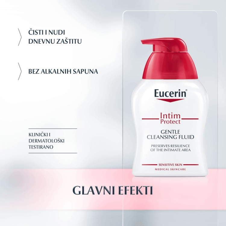 Eucerin Losion za intimnu higijenu ima pH vrednost 4,5, prilagođenu ženskoj intimnoj regiji, i blagi surfaktantni sistem tenzida. Formulisan sa mlečnom kiselinom same kože, održava prirodnu vaginalnu mikrofloru i umiruje iritacije.