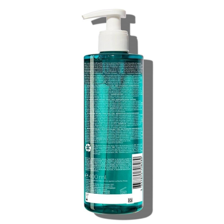 Zahvaljujući pažljivo biranim eksfolirajućim sastojcima koji teksturu kože čine glatkom, Effaclar Micro-peeling gel intenzivno čisti masnu kožu, dubinski otčepljuje pore i uklanja višak sebuma. Smanjuje uporne i dugotrajne nepravilnosti, uključujući ožiljke, i preventivno deluje na ponovno pojavljivanje nepravilnosti.