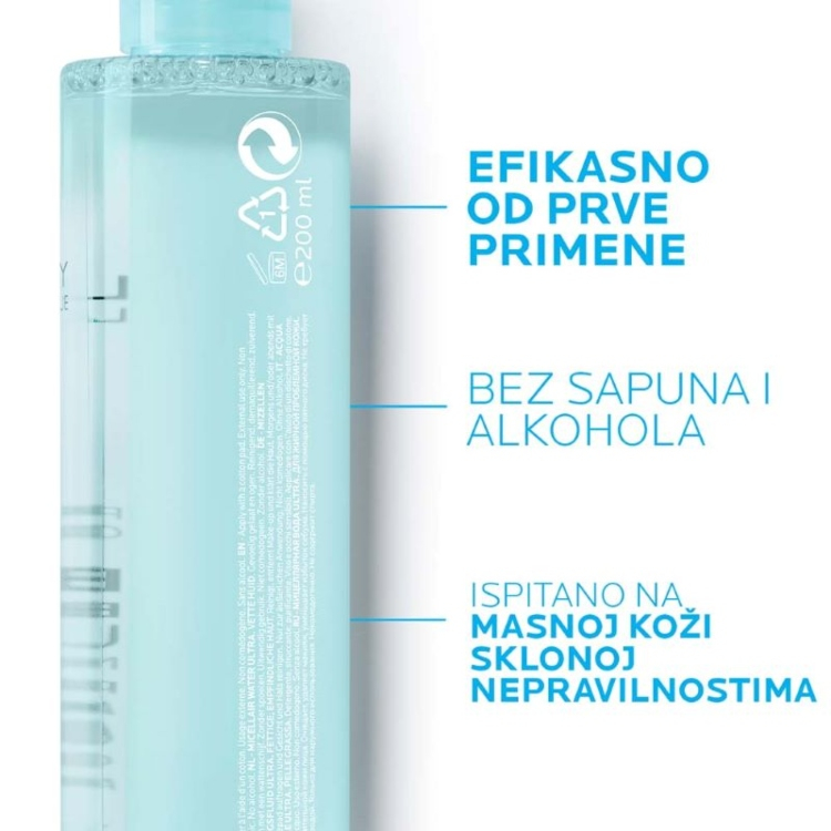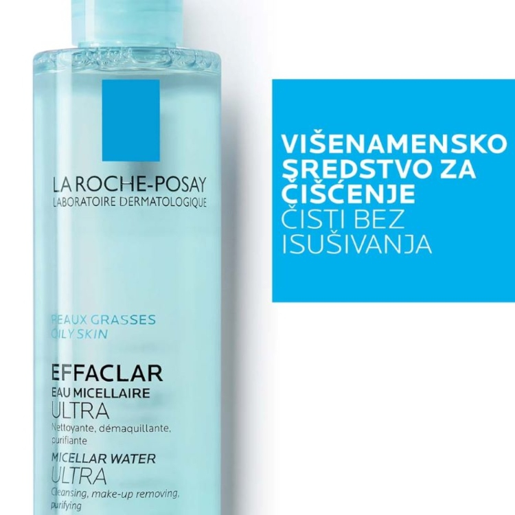 EFFACLAR Micelarna voda za čišćenje nežno čisti kožu zahvaljujući agensima za čišćenje koji poštuju osetljivu kožu. Odstranjuje nečistoće i višak sebuma, dok kožu ostavlja čistom i svežom. Sa umirujućom La Roche-Posay termalnom izvorskom vodom koja deluje protiv iritacija- pH 5.5 - bez sapuna - bez alkohola - bez veštačkih boja - bez parabena.
