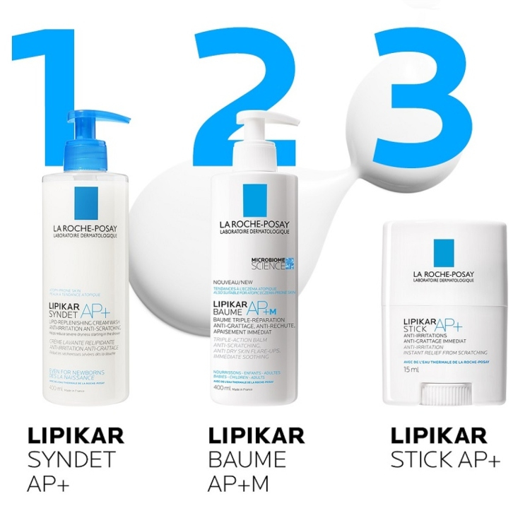 Naneti na vlažnu kožu. Nežno umasirati. Isprati. Nakon pranja, naneti LIPIKAR Baume AP+ koji koži vraca lipide i deluje protiv iritacija.
