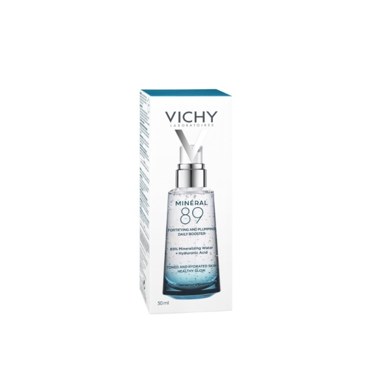 Jedinstvena kombinacija Vichy mineralizovane termalne vode po prvi put u koncentraciji od 89% udružena sa hijaluronskom kiselinom prirodnog porekla. Minéral 89 jača funkciju barijere kože, koja je svakim danom sve jača u borbi protiv štetnih uticaja zagađenja, stresa i umora. Iz dana u dan koža je bolje hidrirana, boljeg tonusa i blistava... puna zdravog sjaja.