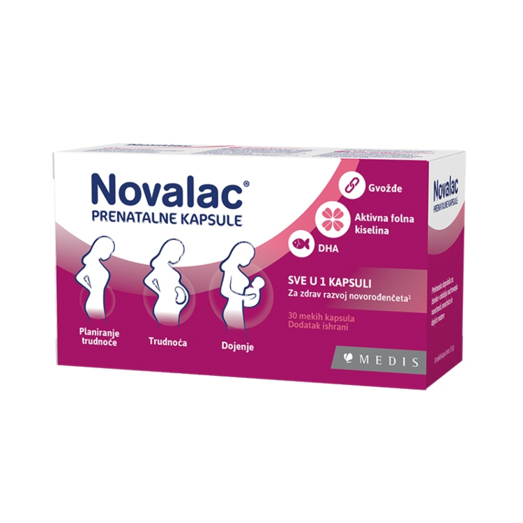Riblje ulje sa 70% DHA, riblji želatin, folna kiselina (vitamin B9), holekalciferol (vitamin D3), D-a-tokoferol (vitamin E), prečišćeno ulje uljane repice, kalijum-jodid, zgušnjivač, glicerol, sredstvo protiv zgrudnjavanja, silicijum-dioksid, emulgator, soja lecitin. Boje: titan-dioksid i patent plava V.